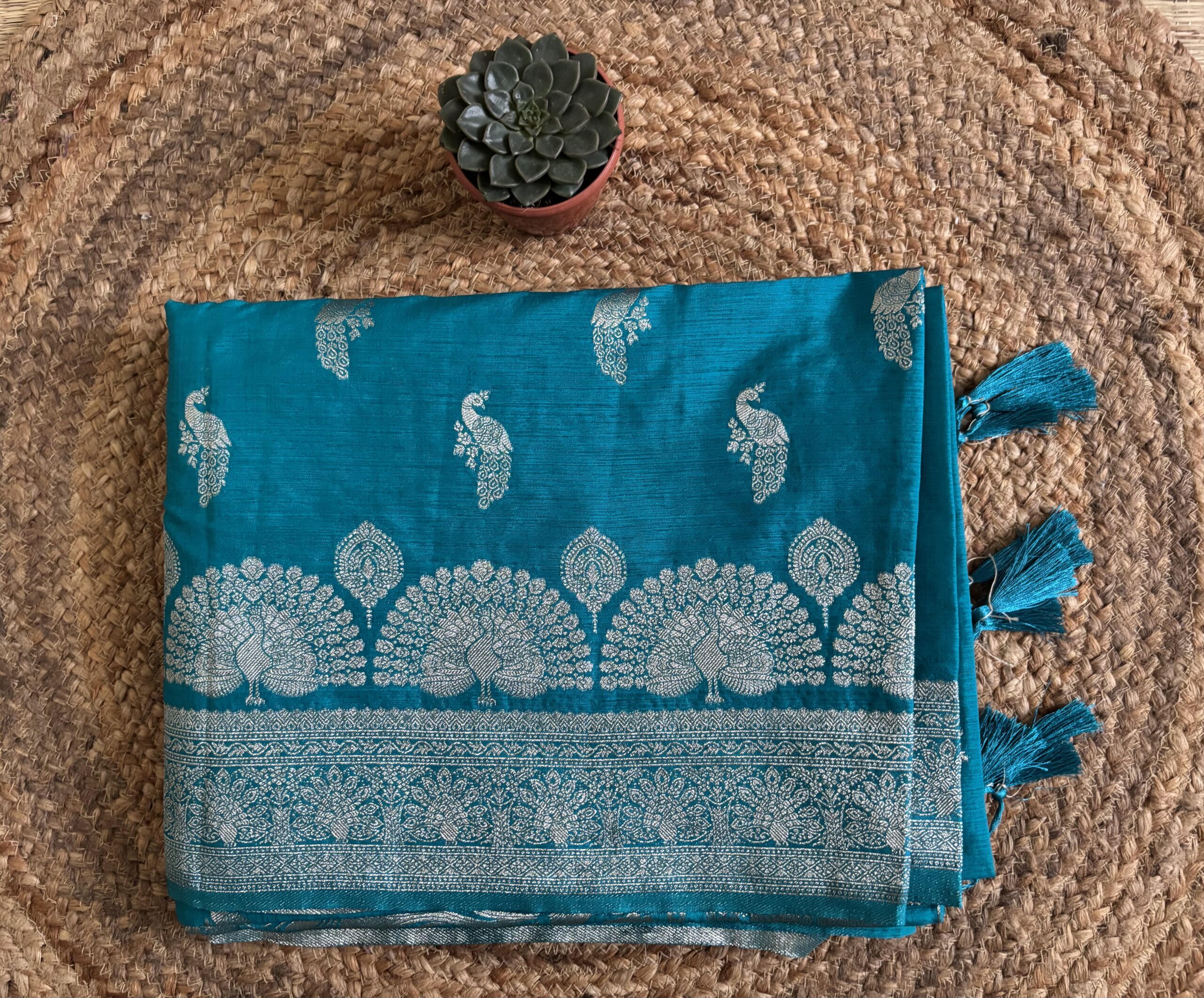 Design: Traditional Meena weaving with intricate zari detailing